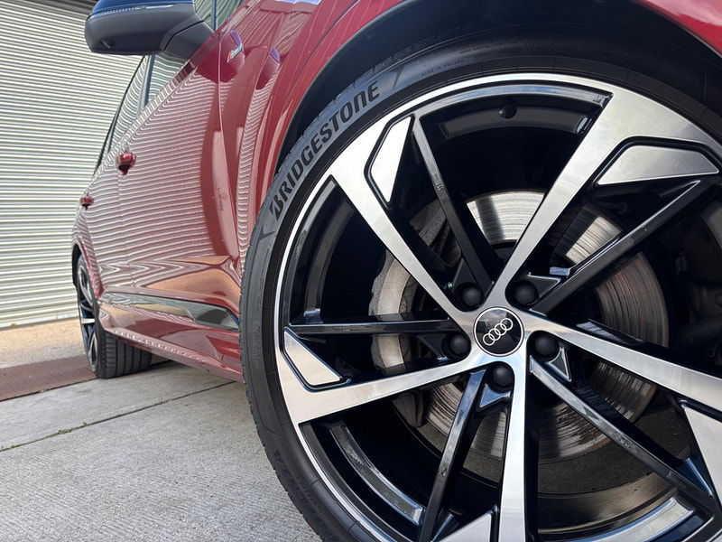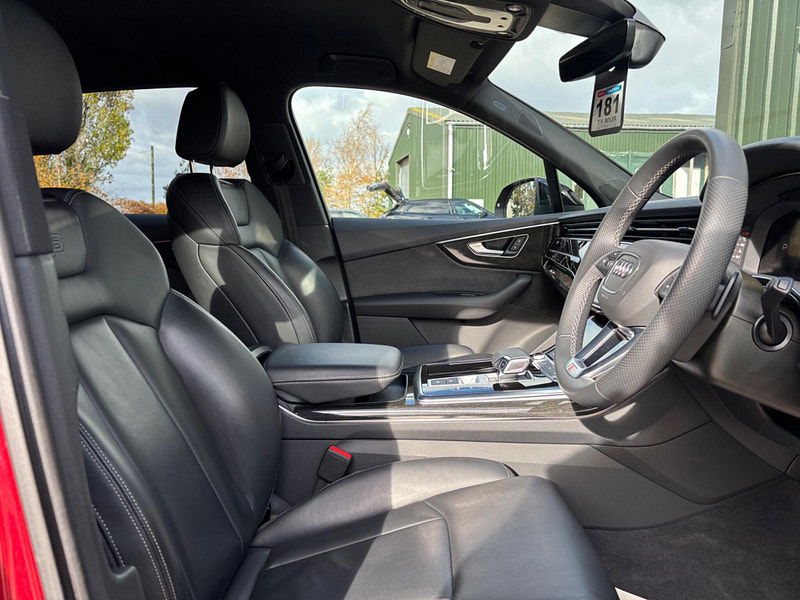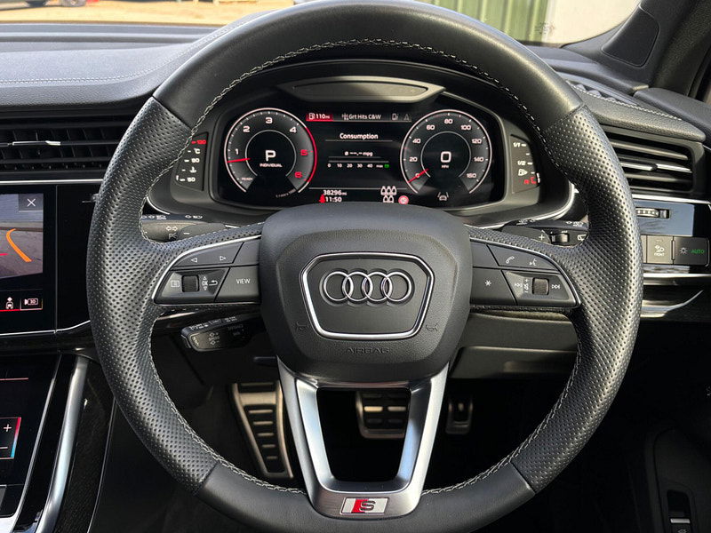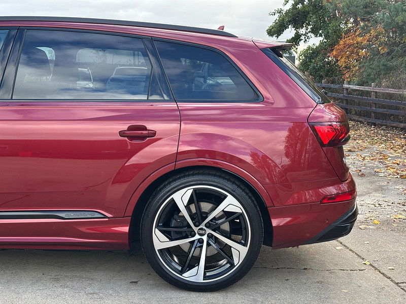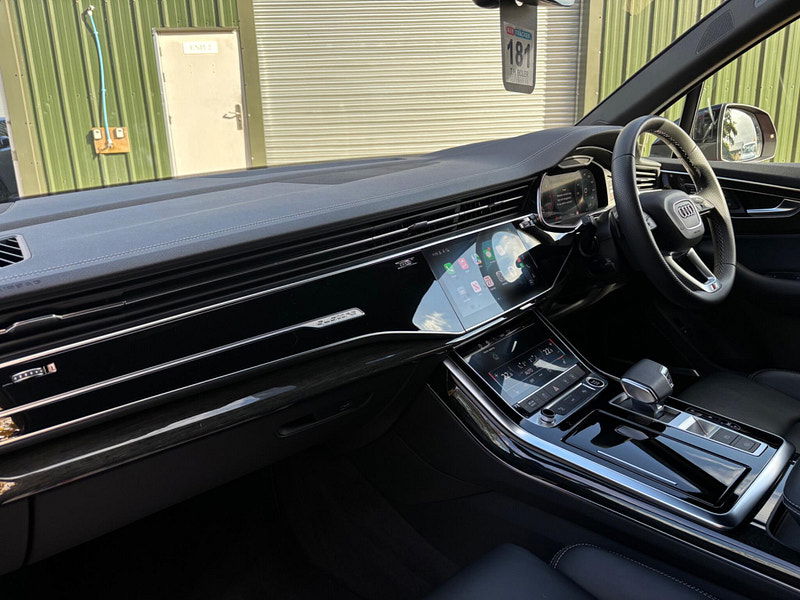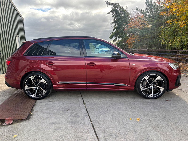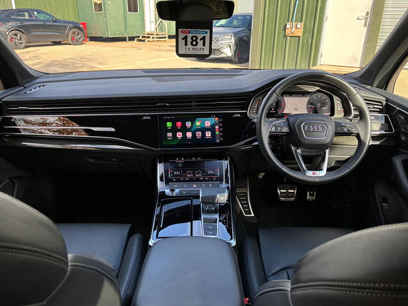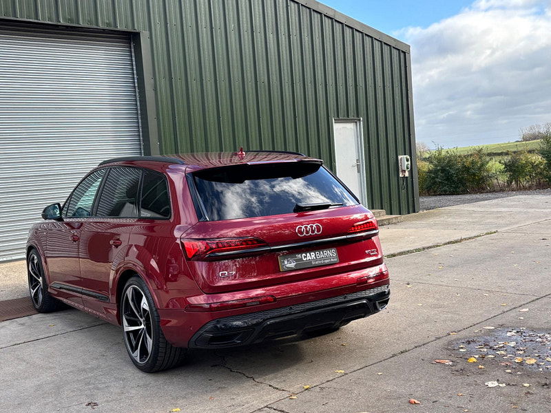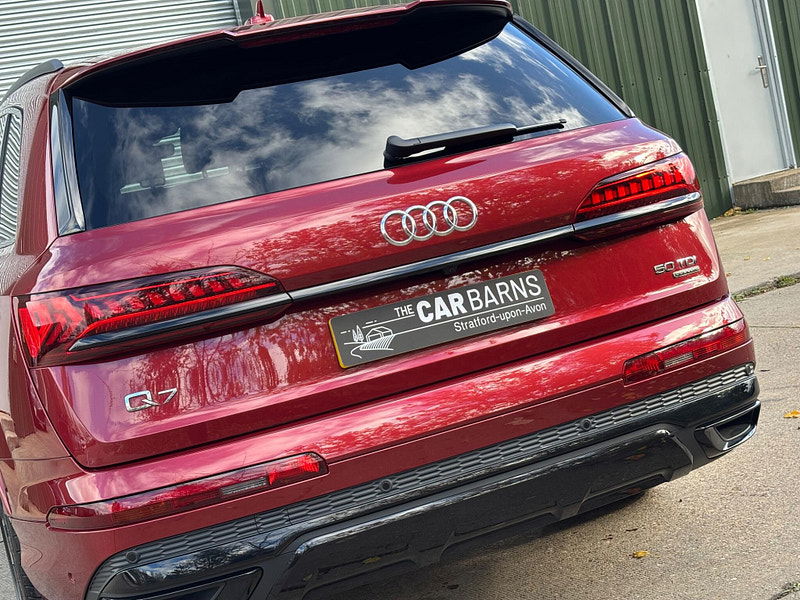 This 2023 Audi Q7 TDI V6 Black Edition offers an exceptional blend of performance and practicality, boasting a powerful 3.0L Diesel engine and Four Wheel Drive for confident handling in all conditions. As a Euro 6 compliant vehicle, it meets stringent emission standards. This spacious SUV comfortably seats seven, making it ideal for families, and features a generous boot space for all your luggage. The Black Edition trim enhances its sophisticated appearance with striking 22 inch alloy wheels in Anthracite Black. Experience effortless journeys with the included Tour Pack, featuring Adaptive Cruise Control for relaxed motorway driving. Parking is made simple thanks to the Comfort and Sound Package, which includes a 360 degree camera and a premium branded sound system. For those who need to tow, the Q7 is equipped with a Trailer Hitch and Trailer Assist, capable of towing up to 3500 kg. Its impressive acceleration, reaching 0 to 62mph in just 6.1 seconds, demonstrates its dynamic capabilities, while its placement in a low insurance group further enhances its appeal as a sensible yet luxurious choice.