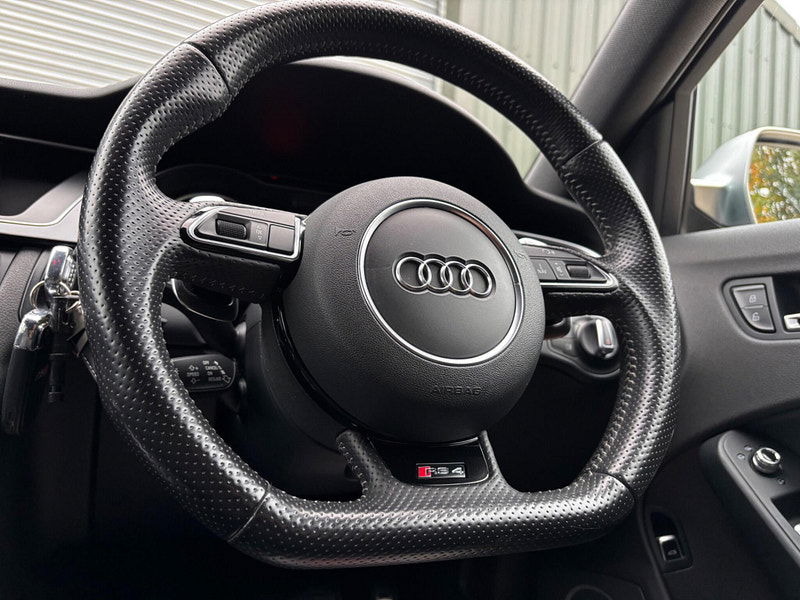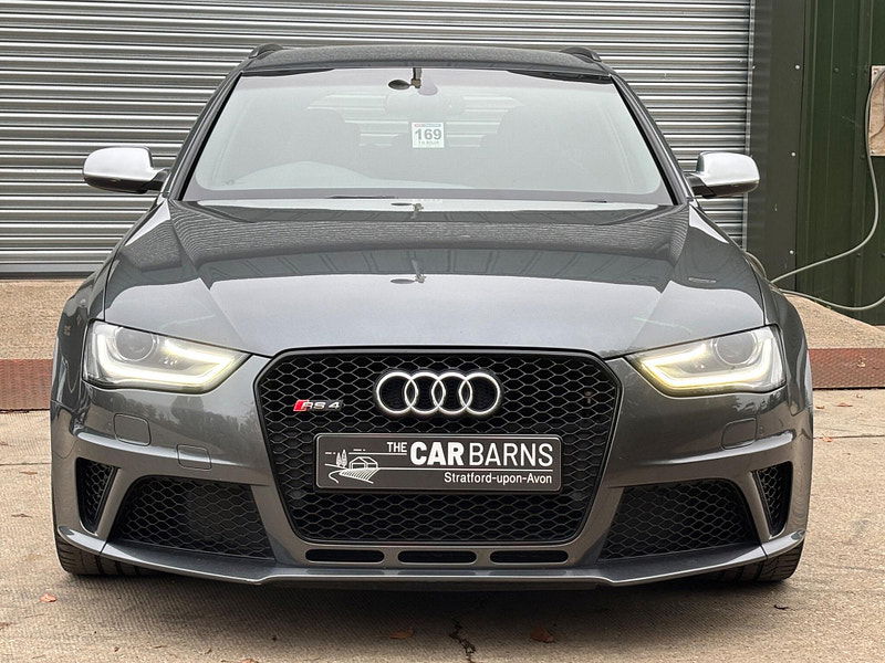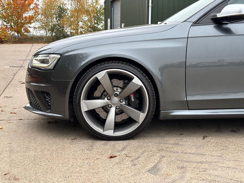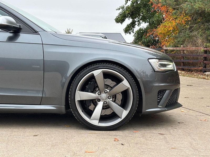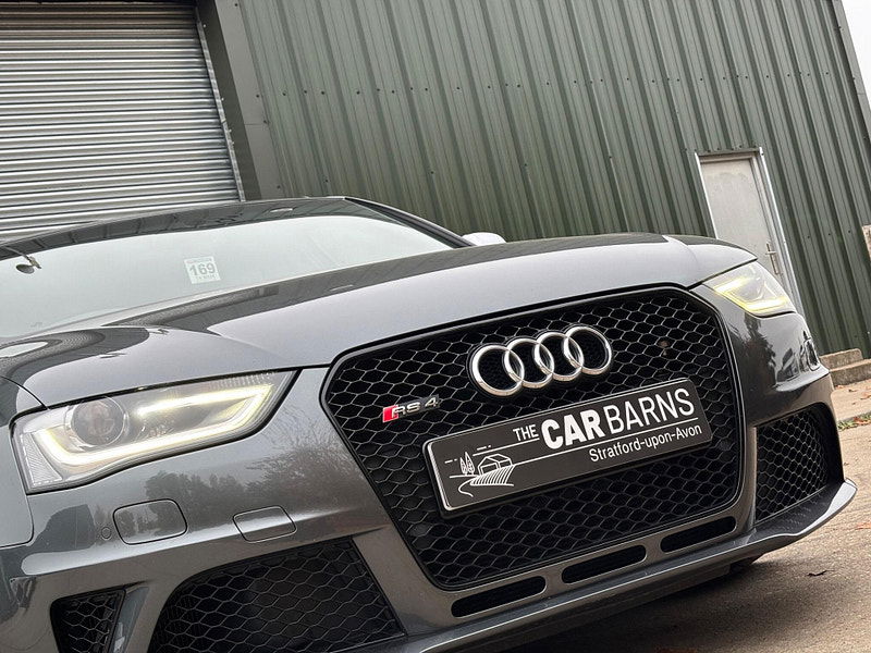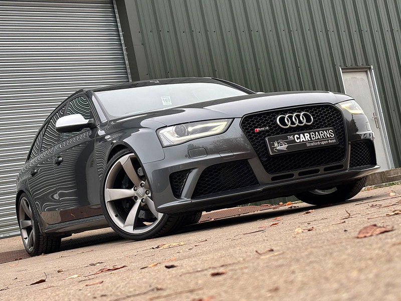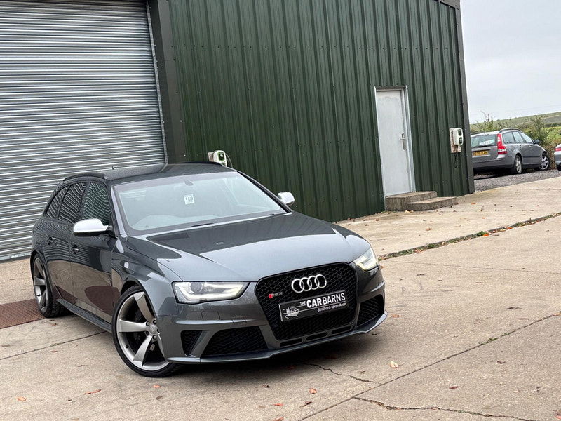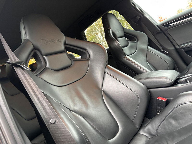 RS BUCKET SEATS, £8K SERVICE WITH AUDI RECENTLY, NEW BRAKES, ALL CONSUMABLES, TYRES ETC. UNIQUE CONDITION. The 2014 Audi RS4 Avant FSI V8 is a stylish estate car with a powerful 4.2L petrol engine and four-wheel drive. The interior boasts RS embossed bucket seats in fine Nappa leather, finished in black metallic with rock grey stitching. Equipped with a sound package and Bang and Olufsen sound system, including luxury branded speakers, this vehicle provides an immersive audio experience. Front parking sensors, including parking assistance, make navigating tight spots easier. Mobile telephone preparation with Bluetooth interface ensures seamless connectivity on the move. The acceleration is a key attribute, demonstrating its ability to go from 0 to 62mph in just 4.7 seconds, setting it apart from similar vehicles.
