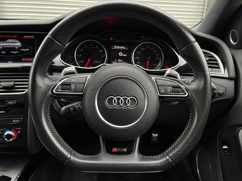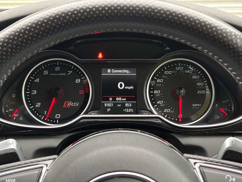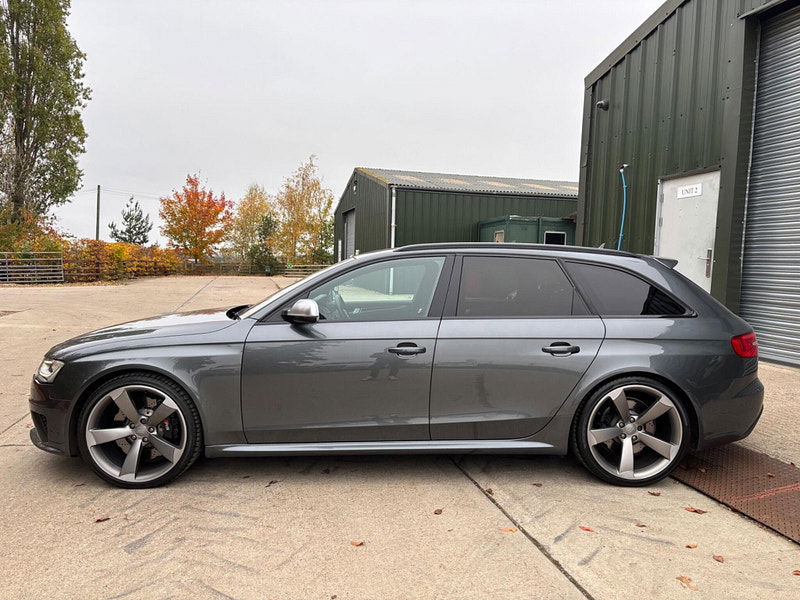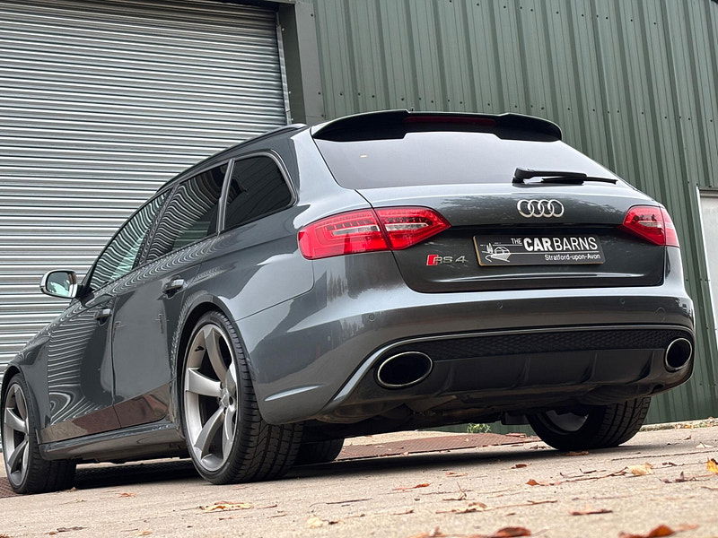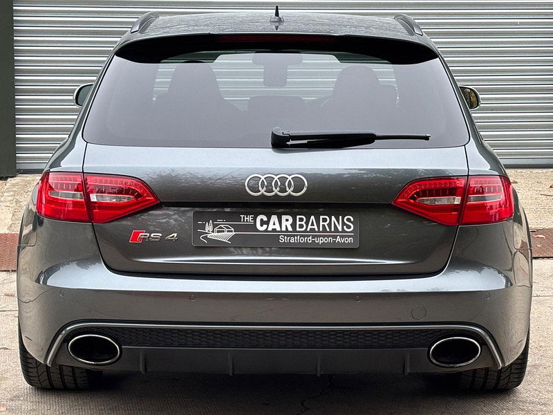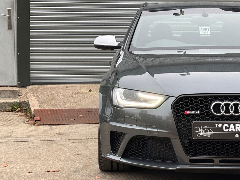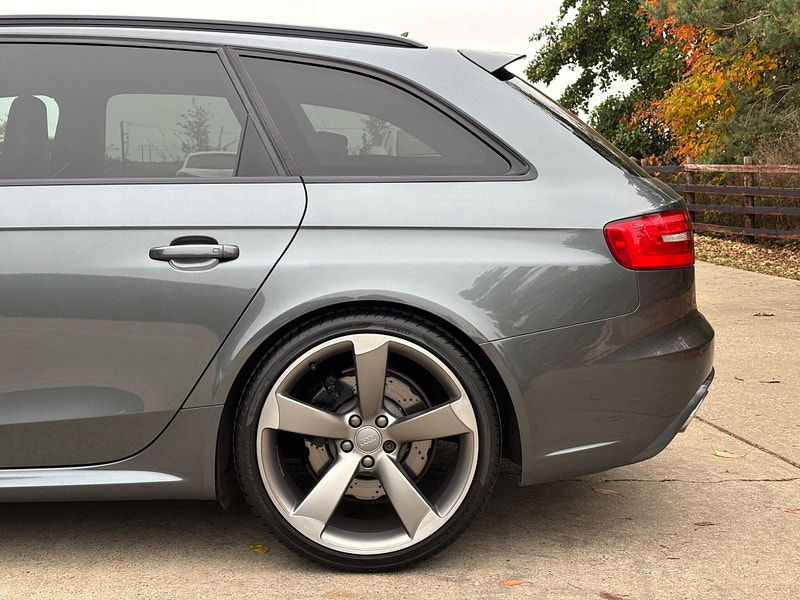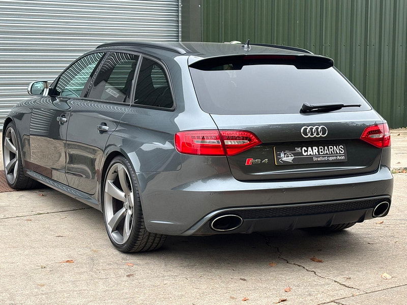 RS BUCKET SEATS, £8K SERVICE WITH AUDI RECENTLY, NEW BRAKES, ALL CONSUMABLES, TYRES ETC. UNIQUE CONDITION. The 2014 Audi RS4 Avant FSI V8 is a stylish estate car with a powerful 4.2L petrol engine and four-wheel drive. The interior boasts RS embossed bucket seats in fine Nappa leather, finished in black metallic with rock grey stitching. Equipped with a sound package and Bang and Olufsen sound system, including luxury branded speakers, this vehicle provides an immersive audio experience. Front parking sensors, including parking assistance, make navigating tight spots easier. Mobile telephone preparation with Bluetooth interface ensures seamless connectivity on the move. The acceleration is a key attribute, demonstrating its ability to go from 0 to 62mph in just 4.7 seconds, setting it apart from similar vehicles.