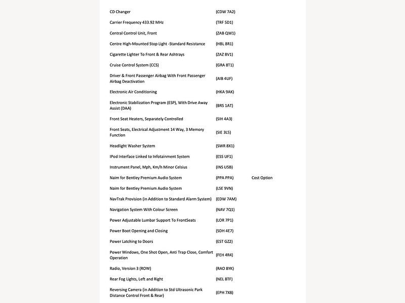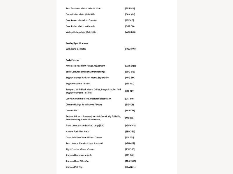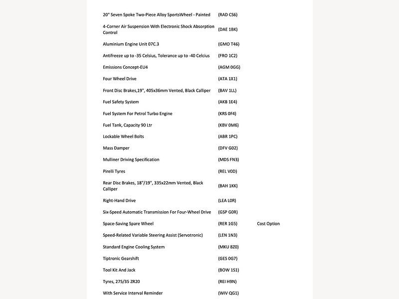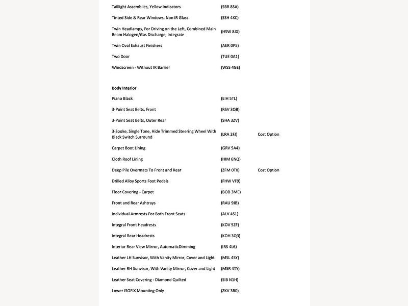 This is the manufacturer's list specification for this model, please verify the details when you view the vehicle. The list below will not include any additional options fitted to the vehicle or modifications.
