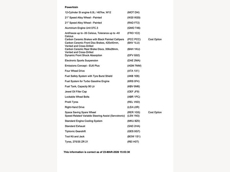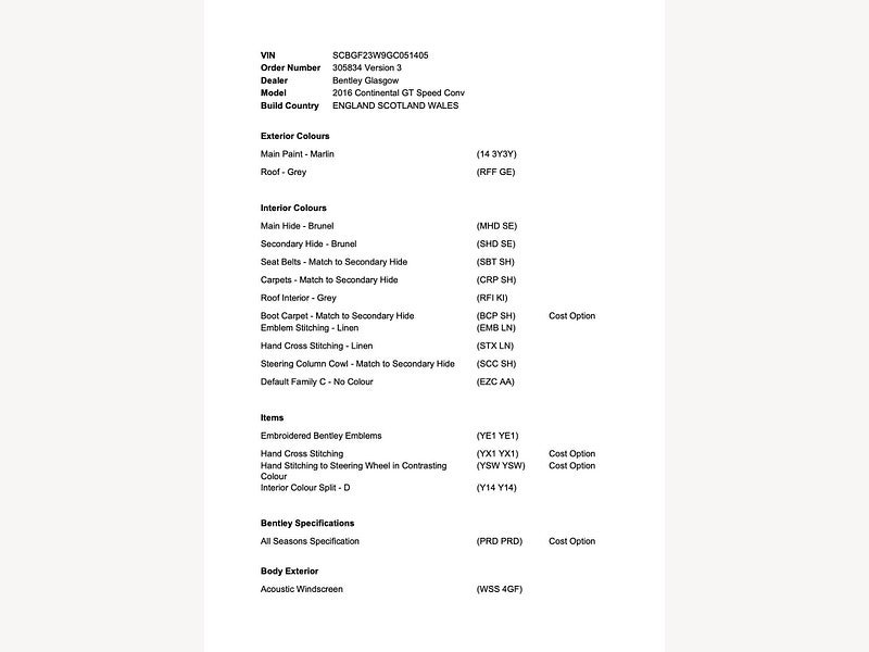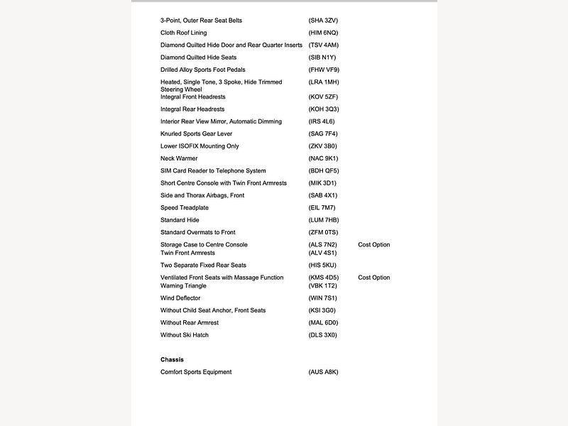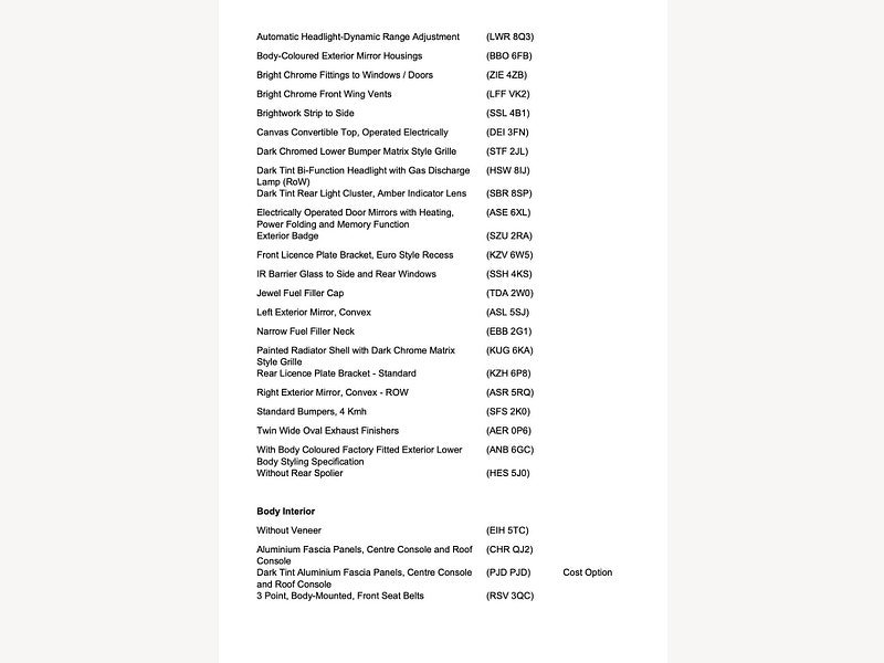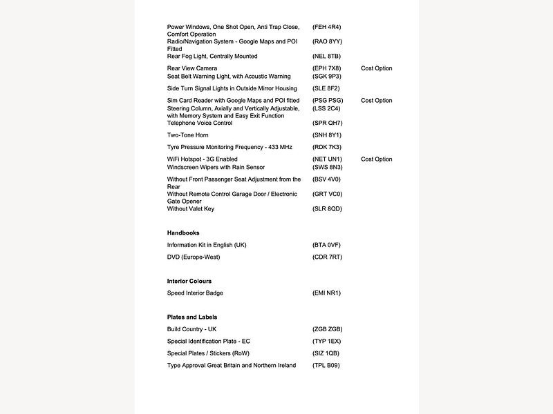 This is the manufacturer's list specification for this model, please verify the details when you view the vehicle. The list below will not include any additional options fitted to the vehicle or modifications.
