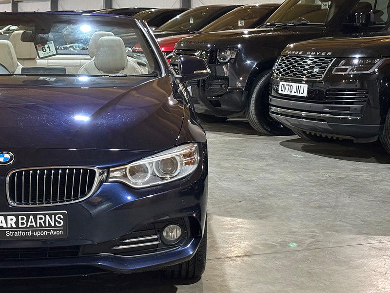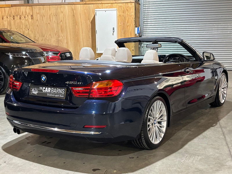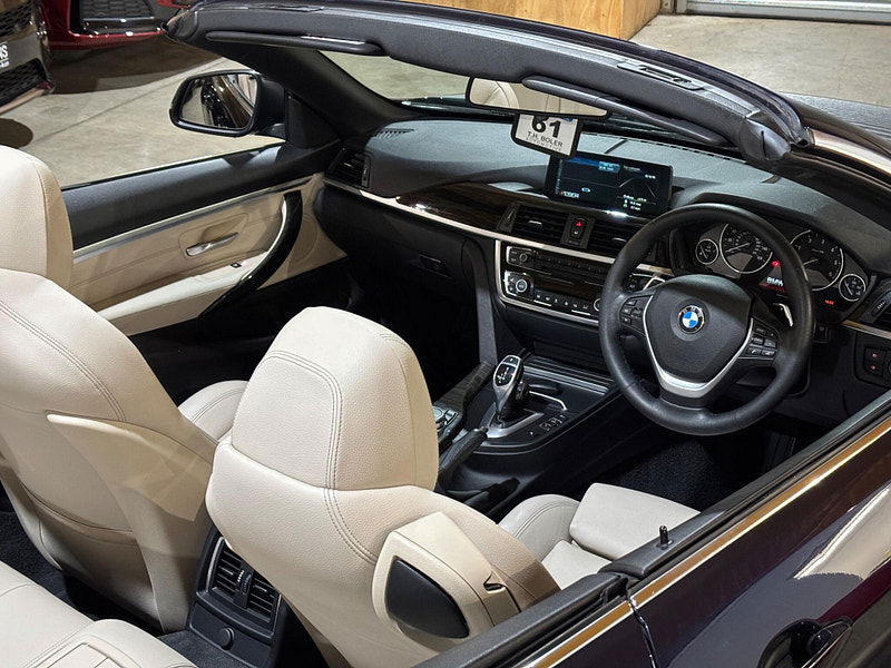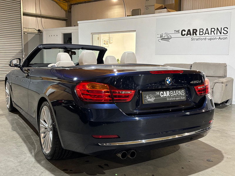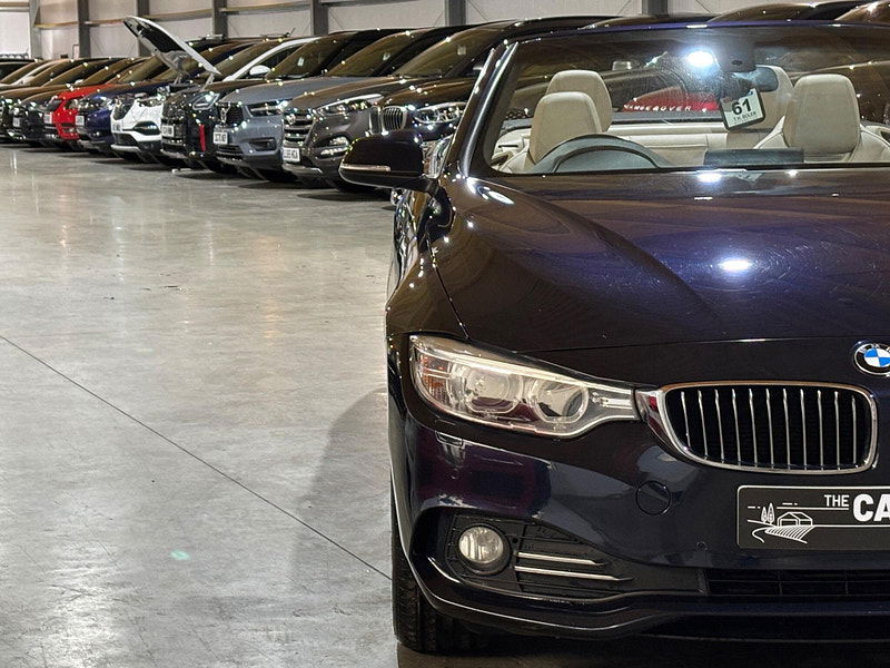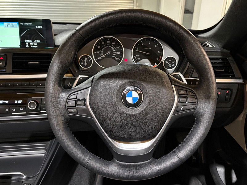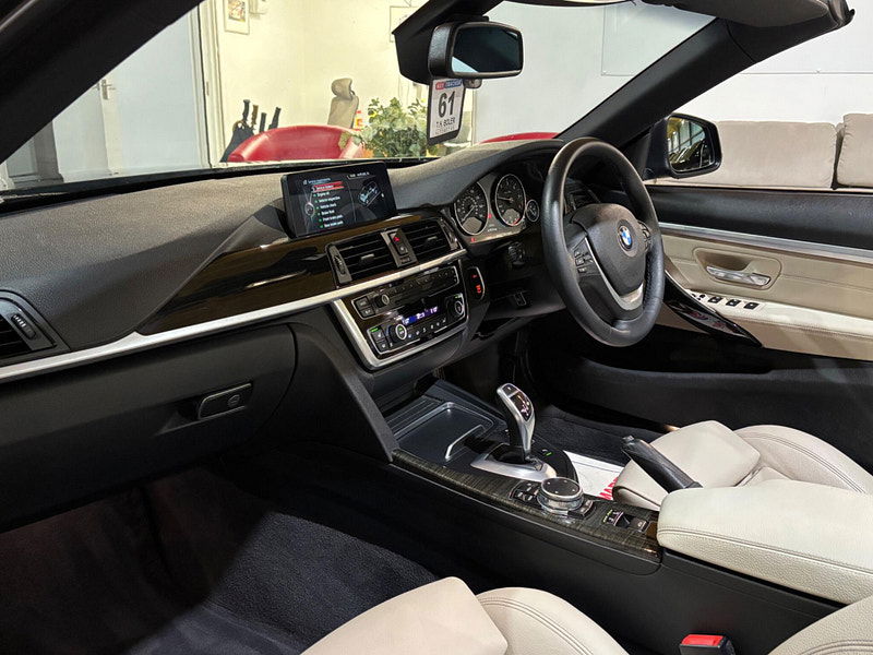 WE ARE PLEASED TO OFFER THIS TIDY EXAMPLE OF THE 420D CONVERTIBLE. EXCELLENT SPECIFICATION INCLUDING: 19' MULTISPOKE ALLOY WHEELS (ALL FRESHLY REFURBISHED) / ADAPTIVE LED HEADLIGHTS / ENHANCED BLUETOOTH CONNECTIVITY / WARM AIR COLLAR / REVERSING CAMERA / ELECTRIC FOLDING MIRRORS / WIND DEFLECTOR / HEATED STEERING WHEEL / HIGH BEAM ASSIST / DAKOTA LEATHER / ELECTRIC SEATS WITH MEMORY / THIS CAR COMES WITH 2 KEYS / GOOD HISTORY WITH FRESH SERVICE AND MOT COMPLETE DECEMBER 2025. FANTASTIC COSMETIC CONDITION THROUGHOUT. This 2016 BMW 4 Series 420d Luxury offers an impressive 60 mpg, making it a highly economical choice. This Euro 6 compliant model features a smooth 2.0L diesel engine and is presented in the sophisticated Luxury trim. It comes equipped with desirable features such as 19 inch Mixed Multi Spoke Style 399 alloy wheels, Adaptive Headlights for improved visibility, and a High Beam Assistant for effortless night driving. The exterior mirrors are electrically folding and include an anti dazzle function, while the Enhanced Bluetooth telephone preparation with USB audio interface and voice control ensures seamless connectivity. The performance of this BMW 4 Series is also noteworthy, achieving 0-62mph in just 8.0 seconds, demonstrating a strong balance between efficiency and responsiveness. Its low CO2 emissions further highlight its environmental consideration. These combined attributes, including its excellent fuel economy and performance figures, indicate that this vehicle offers a superior driving experience compared to many others in its class.