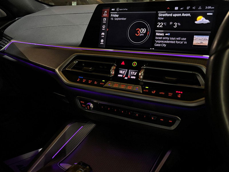 This 2022 BMW X6 40d M Sport offers a sophisticated blend of performance and luxury, boasting a powerful 3.0L Diesel Hybrid engine and Four Wheel Drive for confident handling in all conditions. As a Euro 6 compliant vehicle, it meets stringent emission standards. This M Sport variant comes equipped with the desirable Technology Plus Pack, featuring a Head Up Display, 360 degree parking assistance with front and rear cameras and sensors, and Blind Spot Assistance. The Comfort Plus Package adds climate control, keyless entry, heated and memory seats for enhanced driver and passenger comfort. Experience exceptional audio with the Bowers and Wilkins Diamond Surround Sound System, a truly luxurious branded sound system that elevates every journey. The Panorama Glass Roof Sky Lounge, complete with an opening panoramic sunroof, floods the cabin with natural light. With a substantial towing weight of 2700 kg and impressive acceleration from 0-62mph in just 5.5 seconds, this X6 demonstrates its capability. The generous boot space further adds to its practicality, making it a versatile choice for both daily driving and longer adventures.