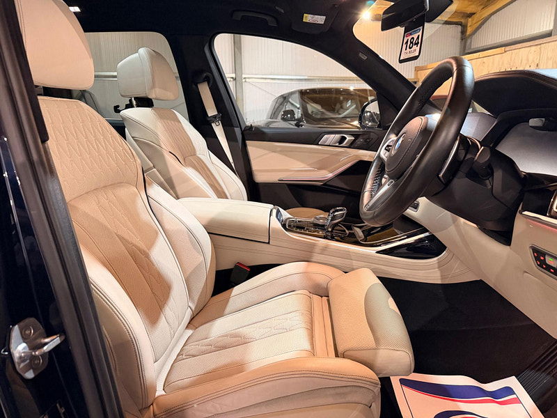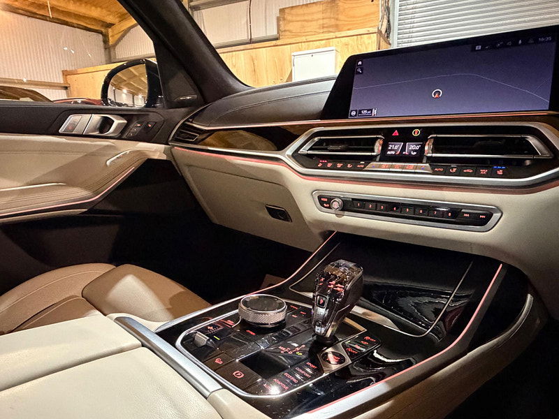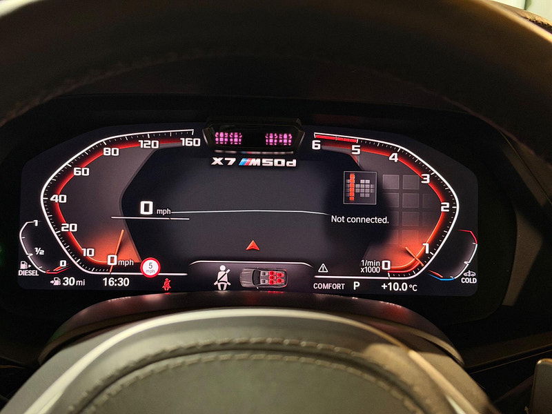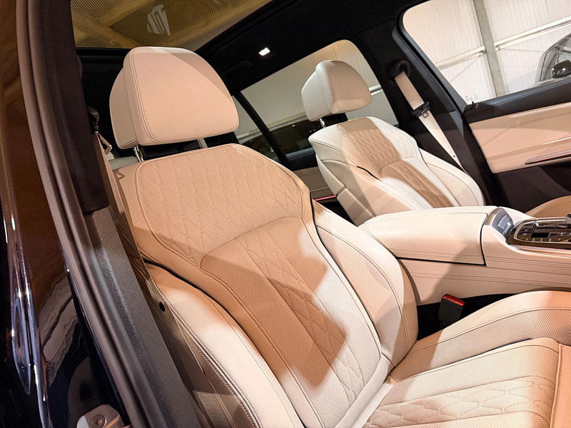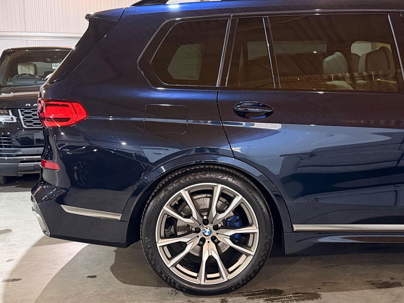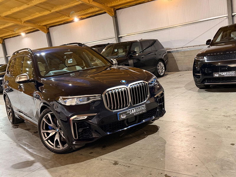This 2019 BMW X7 M50d presents an exceptional opportunity with its remarkably low mileage of just 49,000 miles for its age. This impressive seven seater SUV boasts a powerful 3.0L diesel engine and a four wheel drive system, ensuring capability in various conditions. As a Euro 6 compliant vehicle, it meets stringent emission standards. The X7 M50d also offers a substantial towing weight of 2700 kg, making it a versatile choice for those needing to tow. Inside, you'll find a luxurious BMW Individual Interior Trim Finisher in Piano Black, complemented by the Premium Package which includes climate control and a heated steering wheel for ultimate comfort. Experience exhilarating performance with the X7 M50d's rapid 0-62mph acceleration in just 5.4 seconds, a testament to its dynamic capabilities. The Executive Drive Pro and Integral Active Steering systems work together to provide a superior driving experience, offering enhanced handling and a smoother ride compared to many other vehicles in its class. The Visibility Pack, featuring advanced LED and Laser headlights, ensures excellent illumination for safer journeys. Furthermore, the generous boot space provides ample room for luggage or equipment, making this BMW X7 M50d a practical and high performing choice for families and adventurers alike.
