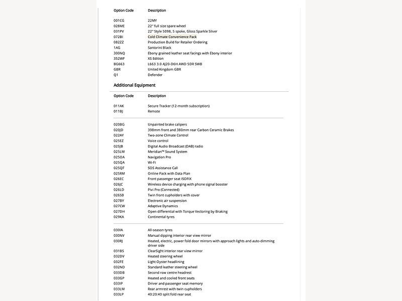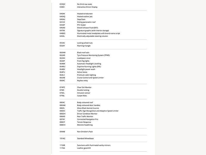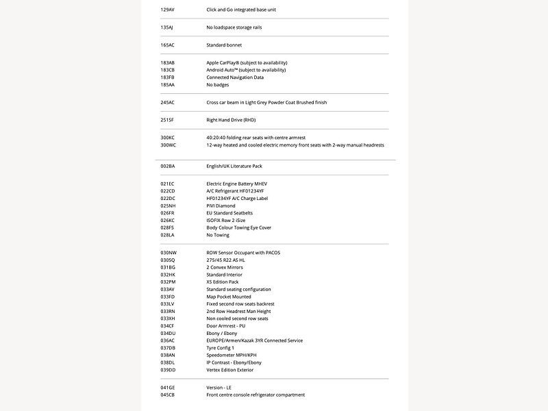 This is the manufacturer's list specification for this model, please verify the details when you view the vehicle. The list below will not include any additional options fitted to the vehicle or modifications.