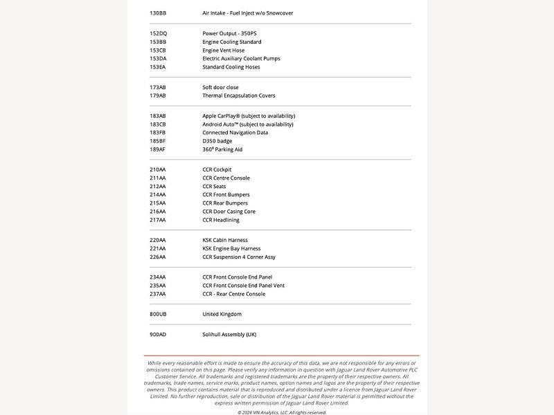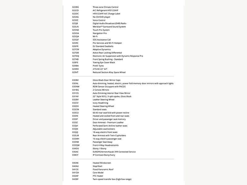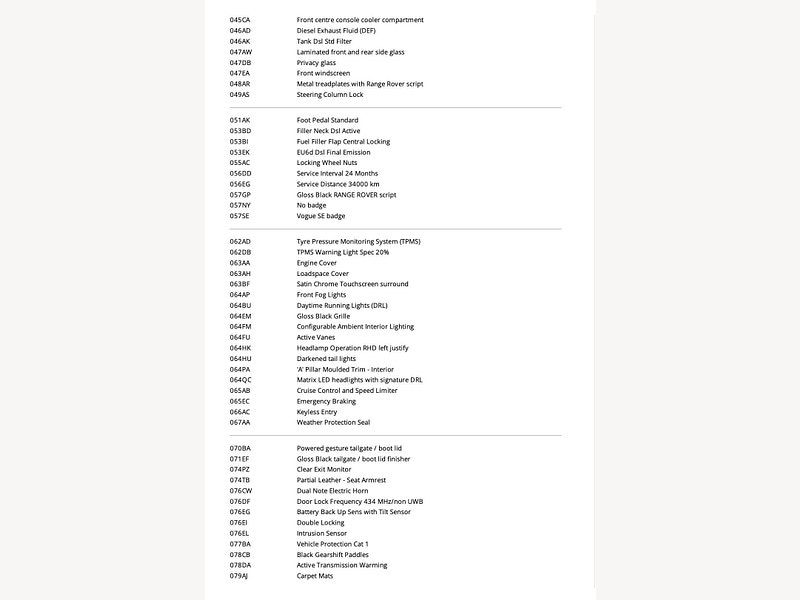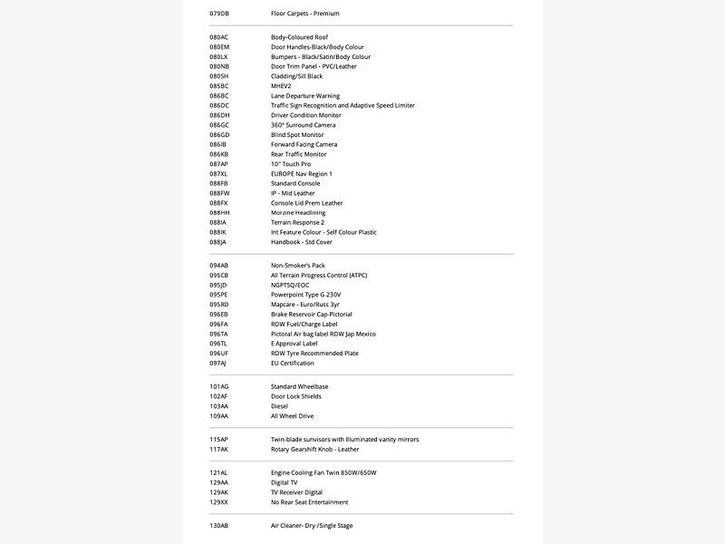 This is the manufacturer's list specification for this model, please verify the details when you view the vehicle. The list below will not include any additional options fitted to the vehicle or modifications.