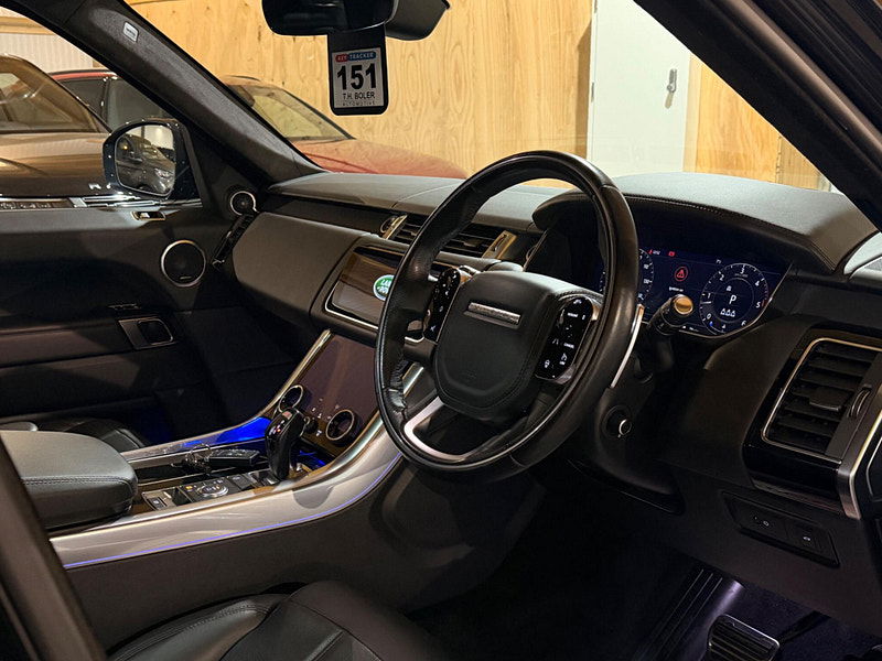 This 2019 Land Rover Range Rover Sport SD V6 Autobiography Dynamic is a superb example of refined capability. As a Euro 6 compliant vehicle, it combines its powerful 3.0L Diesel engine with a sophisticated Four Wheel Drive system, ensuring confident performance in all conditions. The Autobiography Dynamic trim level signifies a high standard of luxury and technology, further enhanced by features such as a Head Up Display, striking 22 inch alloy wheels with a gloss black finish, and advanced Pixel laser LED headlights with signature Daytime Running Lights. The Range Rover Sport Autobiography Dynamic offers an impressive 0-60mph acceleration time of just 6.8 seconds, demonstrating its dynamic prowess. Its substantial 3500 kg towing weight capability means it is ready for any adventure or task. Practicality is also a key consideration, with generous boot space designed to accommodate your needs. Furthermore, the 360 Degree Parking Aid and Three Zone Climate Control contribute to a supremely comfortable and convenient driving experience, setting this vehicle apart from others in its class.