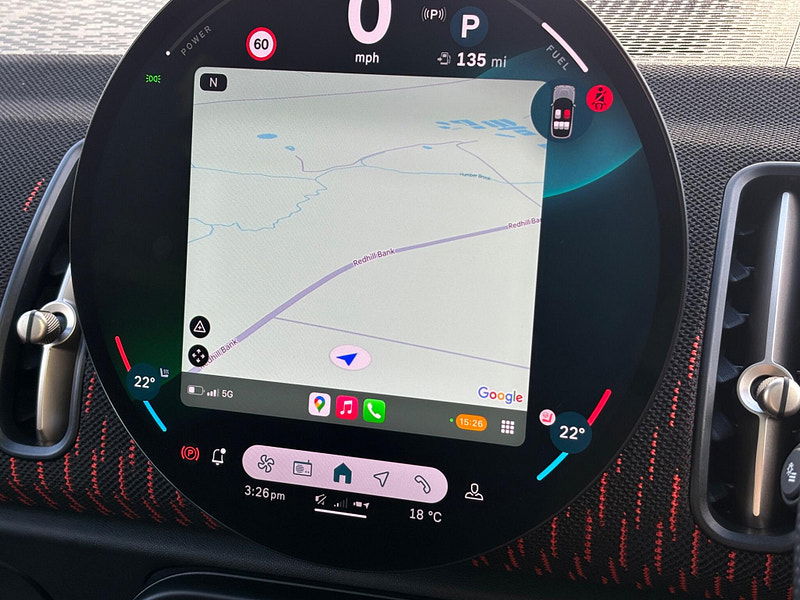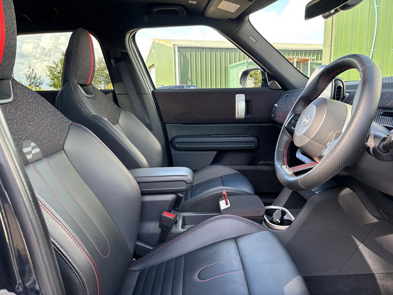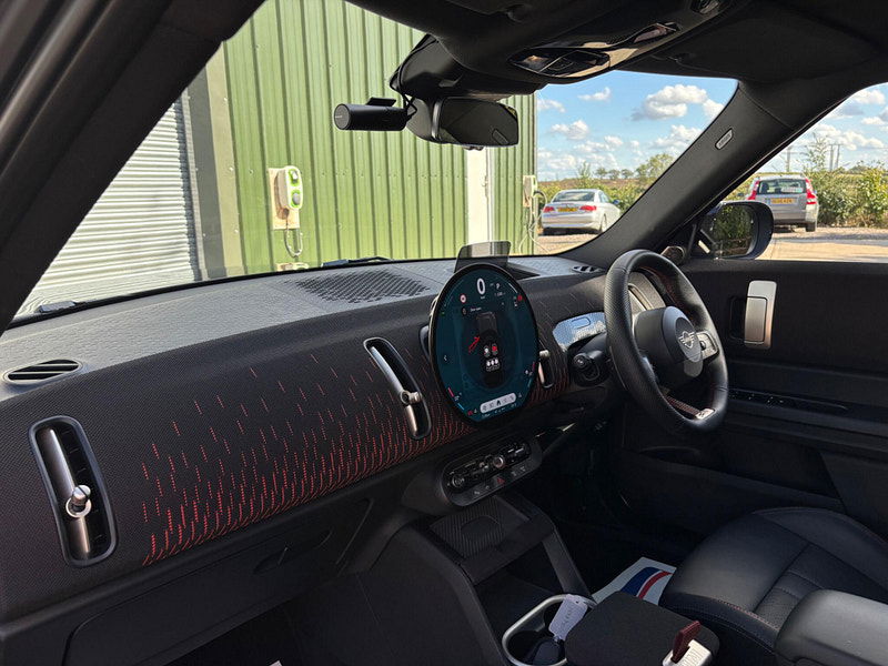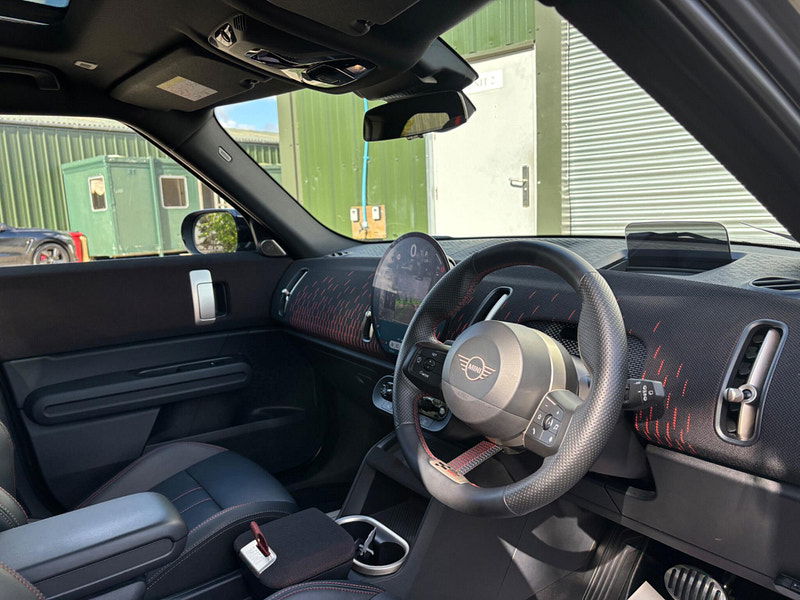 This 2024 MINI Countryman John Cooper Works is a superb example, having had only one owner since new. As a John Cooper Works model, it boasts a potent 2.0 litre petrol engine paired with a four wheel drive drivetrain, ensuring dynamic performance and excellent traction. This Euro 6 compliant vehicle is equipped with the comprehensive Level 3 Pack, which includes adaptive cruise control for relaxed journeys, a head up display for essential information, automatic LED headlights, and keyless entry for convenience. Further enhancing the driving experience are front parking sensors and a front camera for easier manoeuvring, a panoramic opening sunroof, heated front seats with memory function, and a premium branded sound system, complemented by a Harman Kardon surround sound system. Bluetooth connectivity and a heated steering wheel add to the comfort and connectivity. The impressive acceleration of this MINI Countryman, achieving 0 to 62 miles per hour in just 5.4 seconds, highlights its sporty nature and sets it apart from many similar vehicles. The inclusion of wireless phone charging and the generous boot space further demonstrate its practicality for everyday use and longer trips. This combination of exhilarating performance, advanced technology, and thoughtful features makes this one owner MINI Countryman John Cooper Works a truly compelling proposition.