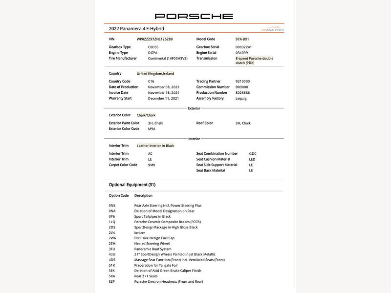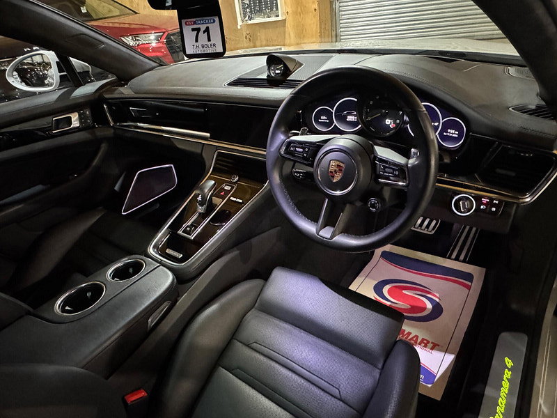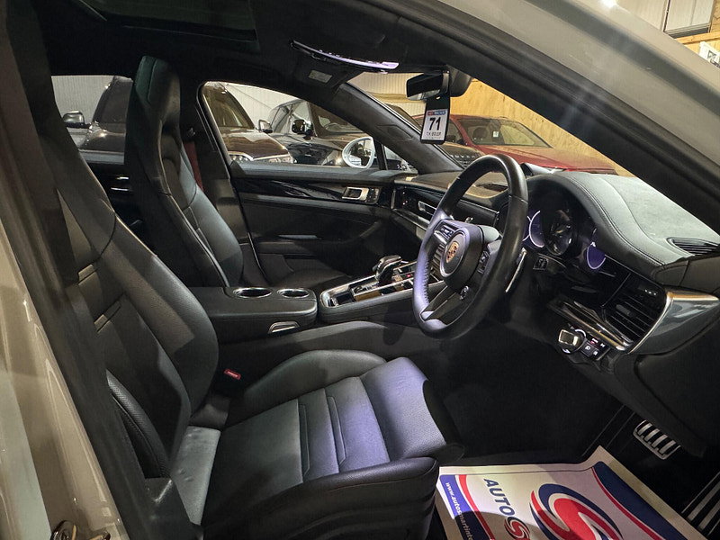 VAT QUALIFYING, WINTER WHEEL SET INCLUDED, PCCB CERAMIC BRAKESThis 2021 Porsche Panamera V6 E Hybrid 4 Platinum Edition presents an exceptional ownership proposition, having been meticulously maintained by a single owner and boasting remarkably low mileage of just 24,827 miles. This Euro 6 compliant plug-in hybrid, powered by a 2.9 litre petrol engine and featuring four wheel drive, offers a compelling blend of performance and efficiency. The Platinum Edition trim enhances its appeal with a striking SportDesign Package painted in high gloss black, complemented by sophisticated Bordeaux Red seat belts and a luxurious Alcantara roof lining. Further elevating the driving experience are the advanced Head Up Display and the immersive Burmester High End 3D Surround Sound System, ensuring every journey is a pleasure. The Panamera V6 E Hybrid 4 Platinum Edition truly stands out from its peers. Its impressive acceleration, capable of reaching 0-62mph in a mere 4.4 seconds, demonstrates its dynamic capabilities. This performance is matched by the practicality of its large boot space, making it a versatile choice for both daily use and longer trips. The combination of its advanced hybrid technology, premium features, and the renowned Porsche driving dynamics makes this particular Panamera a distinguished option for those seeking a refined and capable vehicle.
